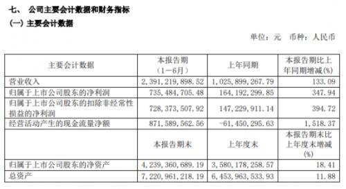 半年报显示,舍得酒业2021上半年实现营业收入23.9亿元,同比增长133.09%,实现归属上市公司股东净利润7.35亿元,同比增长347.94%。