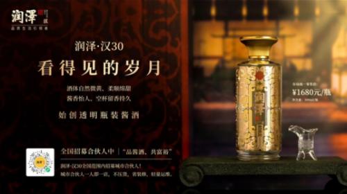 其独特的瓶身设计更是在会场大放异彩!润泽•汉30采用透明瓶型结合汉代鼎、东方瓶,臻选汉代经典纹饰延续传承中国风,传统与现代的碰撞完美结合,诠释中国智慧,凝聚东方之美,尽显典雅高贵,看得见的岁月,看得见的年份酱酒!