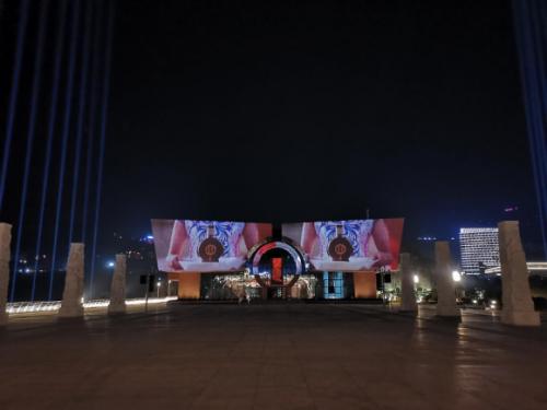 习酒文化城是习酒品牌文化战略发展的标志性工程,肩负着深入推进企业文化建设和发展,强化企业文化优势,赋能品牌发展的重要使命。文化城的建造过程历经700余个日夜,整体建筑采用船舶造型,象征着品牌的扬帆起航。在建筑的正面墙体即船舱的入口处,采用4台NEC英雄系列双色激光投影PX2000UL+,通过3+1的方式进行异形融合,将正面墙体变成一块栩栩如生的大屏,生动再现了习酒集团的文化、历史和美好未来。