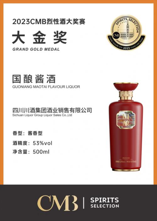 CMB比利时布鲁塞尔酒类大奖赛于1994年创办,是世界酒类行业三大顶级赛事之一,被誉为“酒界奥斯卡”。1999年CMB开始举办烈酒赛,该赛事又被誉为“烈酒奥运会”,以国际性、专业性与公正性享誉全球,大金奖是该赛事的最高奖项。此次赛事中,“国酿”以其首创的“柔润酱香”口感、极具新国风的瓶身设计、“万般酱香、一杯国酿”的顶级品质受到专家评委们的一致好评。