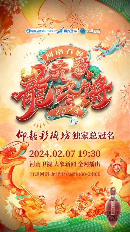 热热闹闹迎新春,马上腾龙贺新年!2024河南春晚官宣定档“2月7日19:30”,主题“齐歌龍咚锵”同时发布!作为中国十大新名酒、豫酒龙头和品牌、河南卫视的黄金搭档,仰韶彩陶坊将以“獨家冠名”的身份,助力2024河南卫视为全国人民开启幸福热闹中国年。