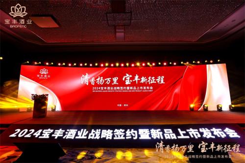 “2024宝丰酒业战略签约暨新品上市发布会”近日在郑州举行。活动现场,宝丰与浙江商源集团和名品世家两家全国头部大商正式达成战略合作,发布两大全国化战略新品并提出“八强支撑”。