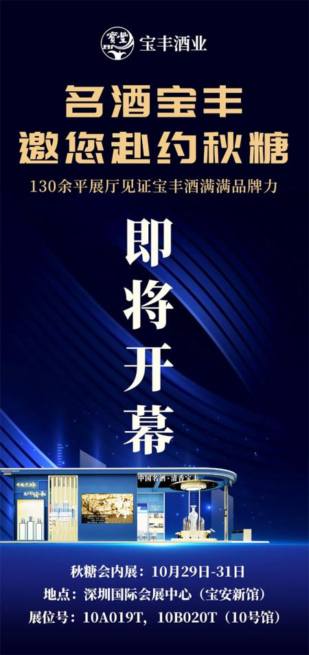 第111届全国糖酒商品交易会(即2024年秋季糖酒会)将于10月29日至31日在深圳国际会展中心盛大举行。宝丰酒业将携130余平展厅、聚焦化的系列产品矩阵、全国化的品牌势能重磅布局秋糖盛会,手握“清香+名酒”两大品牌优势的宝丰蓄势待发!