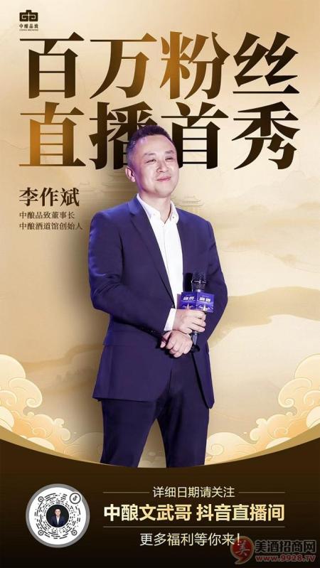 10月中旬,李作斌——这位中国文化老酒龙脉探寻者,将在抖音ID开启中酿文武哥粉丝破百万首场直播,与百万粉丝聊文化、聊老酒,来一场中国白酒龙脉探寻之旅!