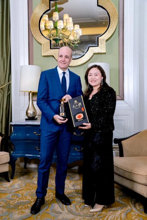 双方在愉快的交流后合影留念,记录下这一友好时刻。此次从礼赠到宴席的深度互动,充分展现了国际社会对中国优秀品牌与文化日益增长的兴趣和认可。集团董事长张红军表示,此次经历是民族品牌“走出去”的一次成功实践,集团将继续秉持高质量发展理念,深耕品牌建设,推动中国白酒文化稳健地走向世界舞台。