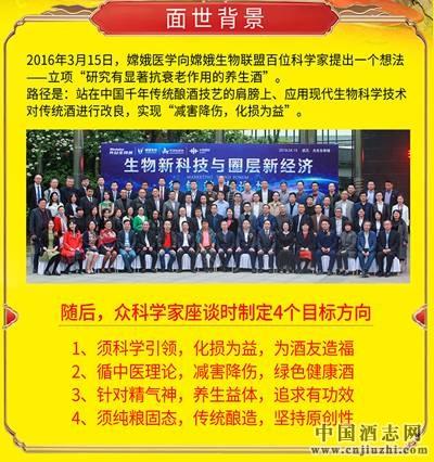 古有"酒乃百药之长"之称,2016年3月15日,"研究有显著抗衰老作用的养生酒"在光谷生物城立项,百位专家在论坛上达成科研目标共识:循中医理论,站在中国千年传统酿酒技艺的肩膀上、应用现代生物科学技术对传统酒进行改良,要实现传统酒"减害降伤,化损为益"的目标。