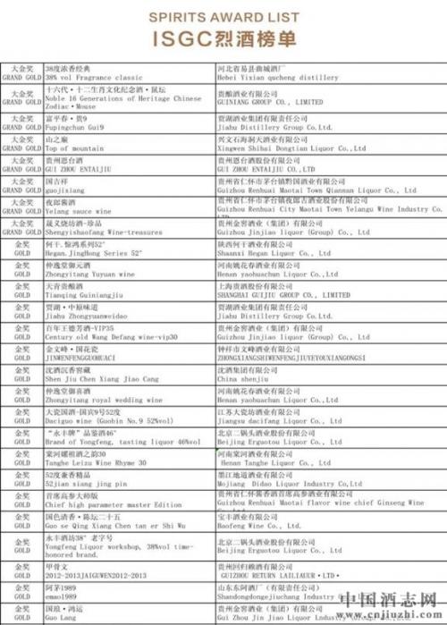 附:获得2021国际酒类(中国)大奖赛金奖的烈酒榜单如下: