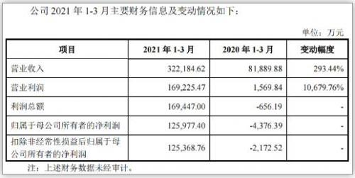 2021年1-3月,郎酒股份实现营业收入32.22亿元,同比增长293.44%;营业利润16.92亿,同比去年大幅增长10679.76%;其中,实现净利润12.60亿。