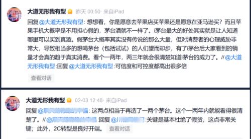 在段永平看来,i茅台最大的好处就是让人知道哪里可以买到真酒。“(i茅台)关键是杜绝了假货,这点非常关键;此外,to C转型是良好开端。这两点相当于再造了一两个茅台,这个一两年内就能看得很清楚了。”