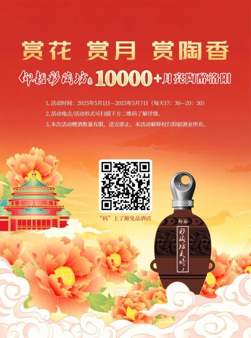 5月1日至7日,洛阳城牡丹盛放,花香满城。仰韶酒业以"文化+美酒"为纽带,联合洛阳60家知名餐饮门店,化身"洛阳牡丹文化节推广大使"与"仰韶文化品牌推介官",重磅推出"赏花赏月赏陶香"万瓶仰韶彩陶坊月亮酒陶醉洛阳活动。