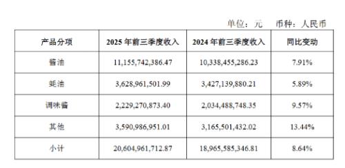 前三季度,酱油产品贡献了111.56亿元收入,占总营收比重五成左右。酱油作为成熟品类,增长空间已然有限。随着人口老龄化趋势加剧和健康饮食意识提升,长期来看酱油行业可能面临增长瓶颈。