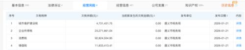 天眼查信息显示,1月21日,贵州省仁怀市茅台镇衡昌烧坊酿酒有限公司欠缴城市维护建设税473.14万元、企业所得税2327.17万元、消费税9282.45万元、增值税1183.34万元。