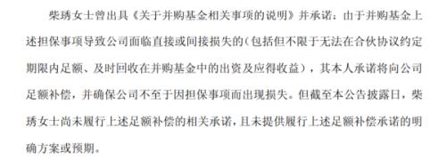 在事件发展过程中,柴L曾参与设立这支并购基金,并为相关债务担保出具书面承诺。公告指出,柴L曾明确表示,由于并购基金上述担保事项导致公司面临直接或间接损失的,其本人承诺将向公司足额补偿,并确保公司不至于因担保事项而出现损失。