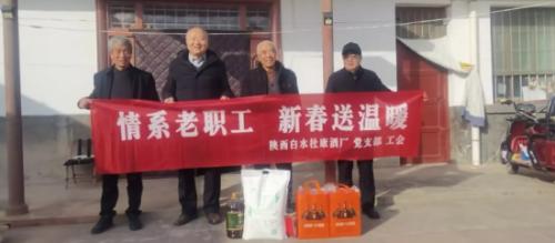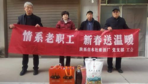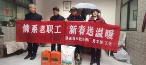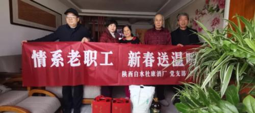 1月27日-28日,在新春佳节即将来临之际,陕西白水杜康酒厂党支部、工会联合组织开展“情系老职工新春送温暖”春节走访慰问活动,为公司离退休老职工送去企业的深切关怀与诚挚的新春祝福。