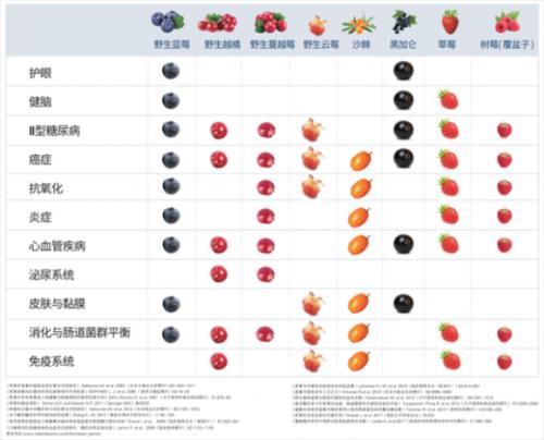 多项科学研究表明,芬兰野生森林浆果富含矿物质、花青素、维生素(尤其维生素E)、黄酮类化合物、酚类化合物等,经常食用森林浆果,可预防炎症、抗氧化、预防过敏反应、心血管疾病、Ⅱ型糖尿病、防癌、健脑、护眼等。因此,森林浆果是芬兰餐桌的常客。