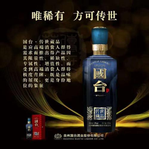 国台*传世藏品是应高端消费人群得需求而推出得产品因其限量性、稀缺性、专属性、增值性、而受到高端消费人群得度青睐,既是品味的展现,更是身份地位的象征。