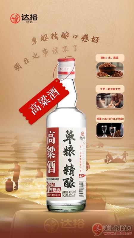 达裕高粱酒,专为追求高品质酒体的白酒爱好者而生,是当之无愧的平价优质口粮酒。它将档次精准定位在家庭佐餐、朋友小聚和个人自饮,无论你是在温馨的家庭晚餐中,还是与老友的欢聚时刻,亦或是独自享受闲暇时光,达裕高粱酒都能为你增添一份醇厚的滋味。