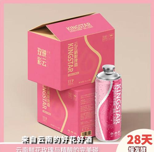 开罐瞬间,清雅的玫瑰香气便温柔萦绕鼻尖,不是浓郁刺鼻的人工香精味,而是如同新鲜玫瑰花瓣轻揉后的自然芬芳,与全麦麦芽的醇厚香气交织出独特的新中式韵味。倒酒时,绵密的泡沫在杯中缓缓升腾,酒体呈现出澄澈的浅琥珀色,挂杯细腻持久。轻啜一口,玫瑰的清甜率先在舌尖绽放,而后麦芽的温润回甘逐渐蔓延,气泡在口腔中轻柔跳跃,带来清爽不粘腻的杀口感。没有传统啤酒的苦涩感,尾调带着淡淡的floral余韵,1升的大容量足够三五好友小聚分享,搭配清甜的糕点或凉拌菜,让微醺时刻更添雅致。这款金星玫瑰味全麦精酿,将花香与麦香平衡得恰到好处,无论是独酌还是小聚,都能感受到中式审美下的饮酒乐趣。