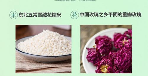 艾诺米玫瑰米酒选东北五常雪绒花糯米和中国玫瑰之乡平阴的重瓣玫瑰酿成,口感柔和,花香与米香融合在一起。8度微醺利口,不会不醉,不会太醉,刚刚好~