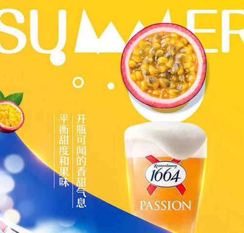 凯旋1664啤酒,开瓶可闻的香甜气息,平衡甜度和果味,橙色酒液,清爽口感,唤醒你的夏日热情。