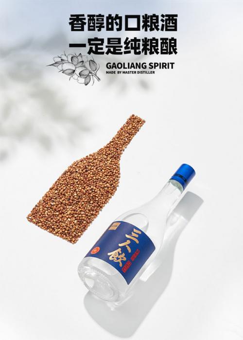用新中式产品设计,诠释东方传统美学,以颇具情感化的“绀宇蓝”打底运用蕴含中国美学的书法呈现“三人饮”,装得下酒桌调侃,亦可盛敬意恩情。