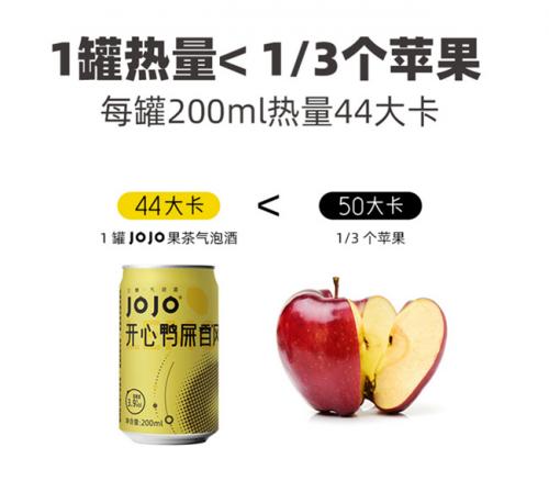 开心鸭屎香风味气泡酒,原料采用潮州凤凰山有机种植的鸭屎香茶,并添加柠檬果汁,融入伏特加基酒中。主要卖点为0糖、0脂、低卡、高颜值。