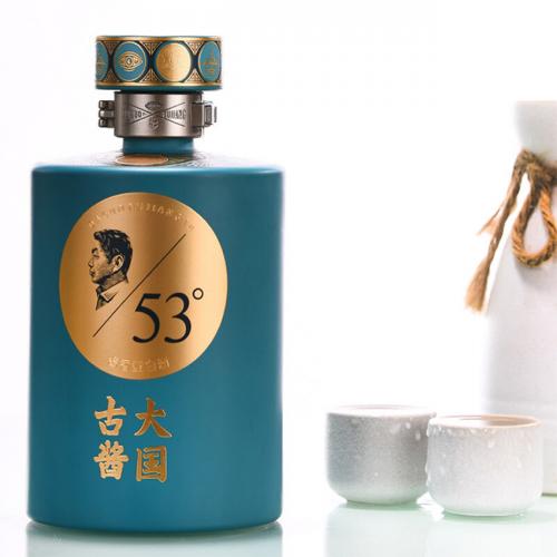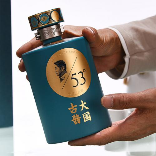 在如今这个追求外在美的社会中,精美的瓶子是很多客户对外表的追求,所以大国古酱酒*珍品在外观设计上非常看重,整体以商务蓝为主题色,低调却又不失优雅。