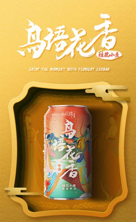 小花样*鸟语花香桂花小麦啤酒只选用优质进口麦芽,新鲜啤酒花,鲜活酵母富含蛋白质、微量元素,酒体发酵度高,残糖低二氧化碳含量高,口感爽净顺滑。