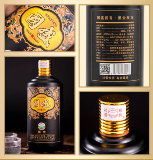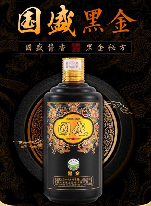 杜酱国盛酒黑金以茅台镇当地优质糯高粱、小麦、水为原料,利用本地的天然环境,端午踩曲、重阳下沙,两次投料,九次蒸馏,八次加曲发酵,七次取酒,历时一年精心酿造,不外添加任何香味物质,从投料生产、品评贮存到出厂经历数年。