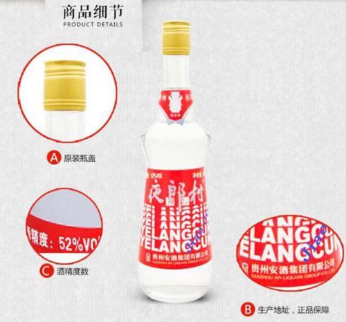 安酒夜郎村是贵州老八大名酒之一,是贵州安酒集团有限公司旗下的系列产品。安酒夜郎村系列产品遵循古法的传统固态酿造生产工艺,是中国传统白酒中最复杂的工艺之一。每一滴最普通的酱香安酒从原料进厂,再到装瓶出厂,至少需要5年的时间。