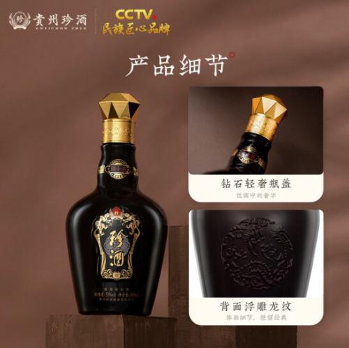 珍酒珍十五选用红缨子有机糯高粱、小麦、水为原料,采用传统酱香型白酒纯粮固态发酵工艺精心酿造,选用不同年份珍藏老酒和优质基酒匠心勾调而成;未添加任何香气、香味物质,具有酱香突出、陈香舒适、细腻圆润、绵甜味长、空杯留香持久的风格。珍十五饮用时甘甜爽口,感觉激情满怀,饮后神清气爽;属珍酒年份酒系列经典之作。
