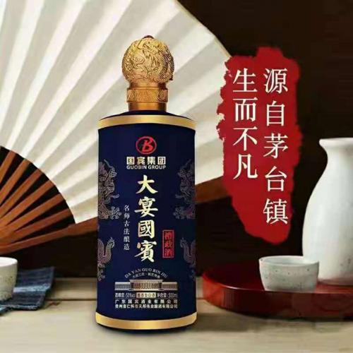 大宴国宾酒产自中国酱酒核心产区——贵州省茅台镇,茅台镇地处河谷,风速小,十分有利于酿造茅台酒微生物的栖息和繁殖。