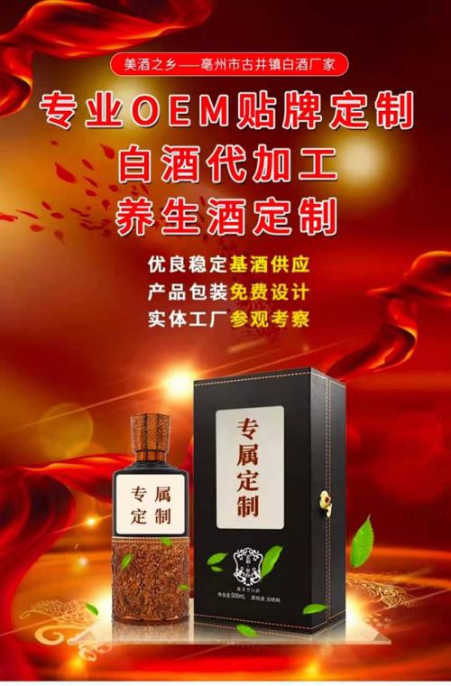 亳州市农家汉酿酒有限责任公司采取酒厂直面消费者模式,无中间环节,可以省去很多消费。公司主要针对安徽市场进行贴牌定制服务,想在安徽做酱酒贴牌定制的朋友可以有限考虑这一家。