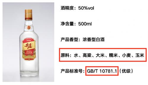 当然,大家从尖庄酒的标签上也可以看出来。首先是配料表,只有大米,糯米,高粱,小麦、玉米五种原料,完全没有任何其他物质,然后还标注了固态法白酒的执行标准代号,固态法白酒标准代号有三种, GB/T10781.1(浓香型)、GB/T10781.2(清香型)、GB/T 26760(酱香型),尖庄酒的便是GB/T10781.1(浓香型)。