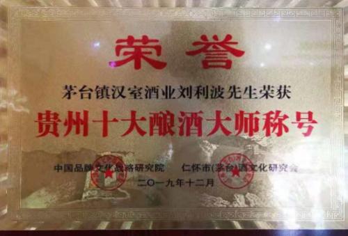 在对高质量酱酒的思考与实践过程中,刘利波先后获得“中国十大酱酒大师”、“中国酱香酒酿酒大师”等荣誉称号。汉室酒业产品也获得“中国工匠精神奖”,“中国知名品牌”、巴拿马纪念奖等奖项,成为贵州省著名商标。