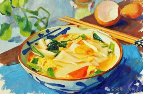 北方面如父,宽厚沉默,扛得起风雨;南方面如母,细腻温柔,盛得下悲欢。它们隔着秦岭淮河遥遥相望,却在无数游子的胃里悄然相融——就像我此刻,在江南的秋雨夜里,煮了一碗手擀面,浇上昨夜熬的笋干老鸭汤。面是北的,汤是南的,而我,是那个贪心的中间人,想把整个中国的味道,都盛进这一碗里。