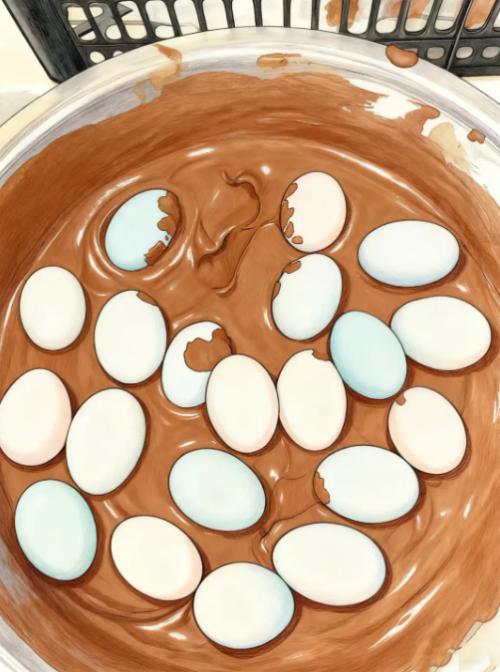 最具古法的耐心与层次的腌制方法是黄泥/草木灰裹覆法。取优质黄泥或草木灰,加盐、酒、香料拌匀,包裹鸭蛋,密封于陶坛。此法有三大妙处:1.密封性好:泥层隔绝空气,防止腐败;2.渗透缓慢:盐分通过泥层一点点渗入,风味更柔和;3.酒香增韵:米酒挥发,赋予蛋体淡淡酒香。