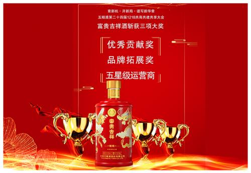 富贵吉祥酒,宜宾五粮液股份有限公司出品。富贵象征生活美好,吉祥代表好运之征兆,富贵吉祥一词饱含了人们一生对美好生活和理想人生的追求和期盼,也表达对他人的深深祝福。五粮液股份富贵吉祥酒满足人们一边获得美酒带来的味觉享受,一边获得“讨彩头、送祝福”的情感诉求。