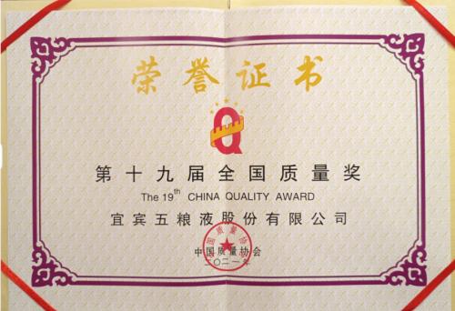 2021年,第十九届“全国质量奖”出炉,五粮液第四次成功入选,成为中国酒业和四川酒企中,唯一四度摘得中国质量领域最高荣誉的企业。